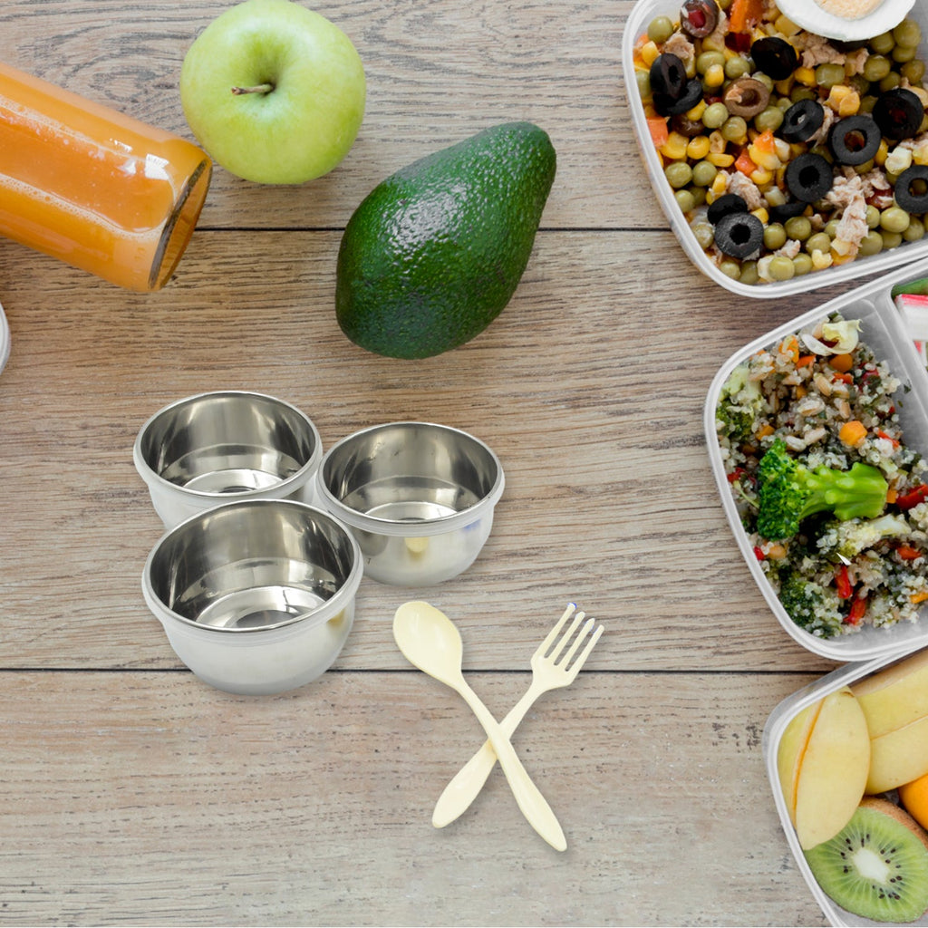 • 1 Stainless Steel Bowl Is Provided With Airtight Plastic Heat-Resistant Lid Which Prevents The Leakage Of Liquids